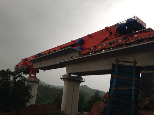 截止到2017年4月17日,由通聯(lián)科技生產(chǎn)的900噸運(yùn)架一體式架橋機(jī)安全完成昌贛鐵路第100片梁的架設(shè)。 此臺架橋機(jī)自完成現(xiàn)場安裝調(diào)試投入使用以來,憑借良好的性能和極高效率, 得到了客戶單位和監(jiān)理單位的一致好評。